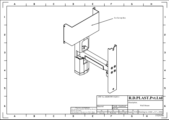 The Engineering Dept. raised a requisition for RD Custom Made Mount. RD Plast Customer Support Manager, Senior Product Specialist & Designer with enriching experience ,looked after the project to develop this unique Swivel wall mounts.